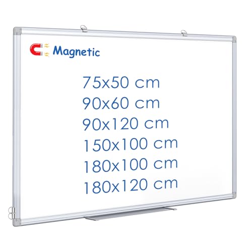maxtek Whiteboard 120 x 90 cm, Magnetic White Board for Wall, Aluminium Frame Large WhiteBoard with Pen Tray, Dry Erase Board for Home Office School