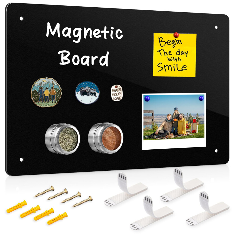 43.5 x 30 cm Black Metal Magnetic Board for Wall - Magnet Notice Board to Display Magnetic Letters Numbers Animal, Poetry, Spice Jars, Notes, Photos,
