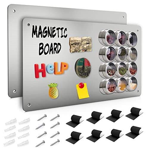 ALANGDUO 2 Pack Magnetic Board for Wall, 42 x 30cm Metal Magnets Board for Fridge, Stainless Steel Magnetic Notice Memo Board to Display Notes, Photos, Spice Jars, for Home Office Kids Bedroom
