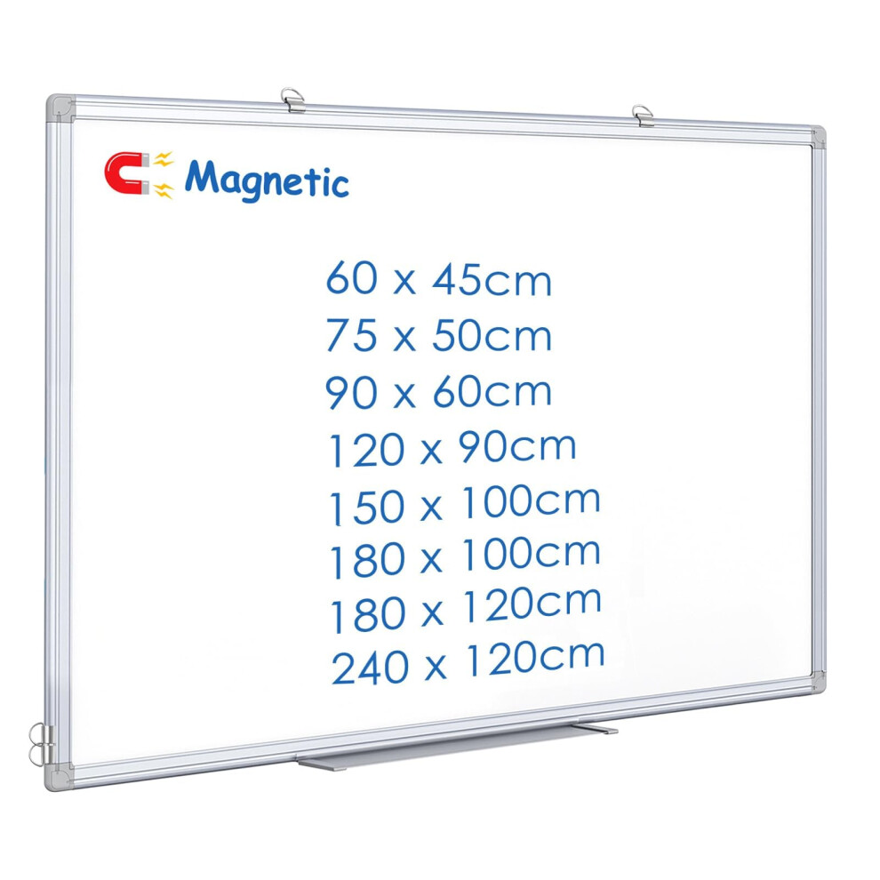 DOLLAR BOSS Large Whiteboard, White Board for Walls 120X90 CM Magnetic Board for Wall Magnet Board with Pen Tray Aluminium Trim and Dry Wipe Board Writing Board for Office School and Home