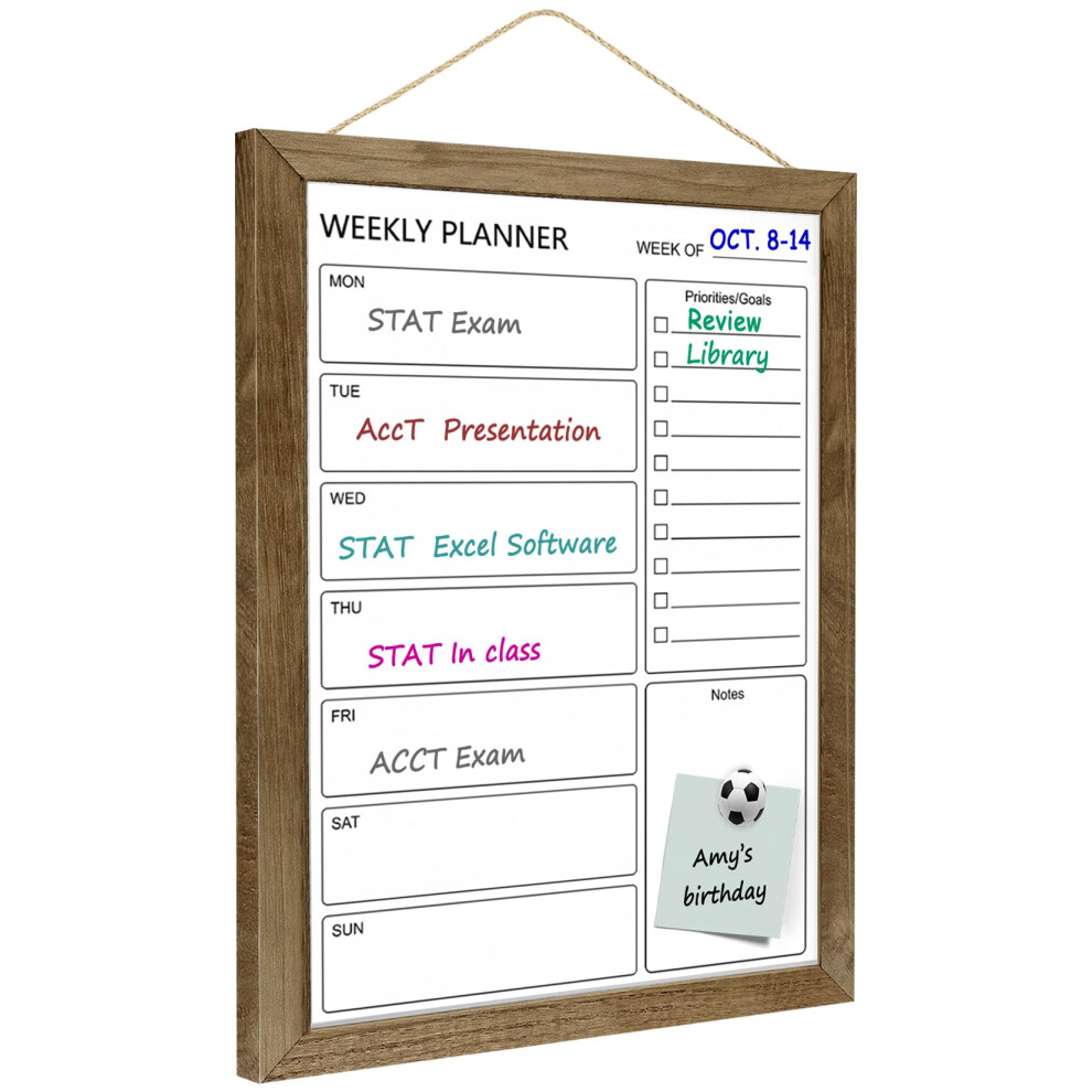 Umtiti 10.5" x 14.5" Dry Erase White Board & Weekly Calendar Board, Magnetic Whiteboard for Wall,Solid Wood Rustic Brown Framed Message Board, Planner