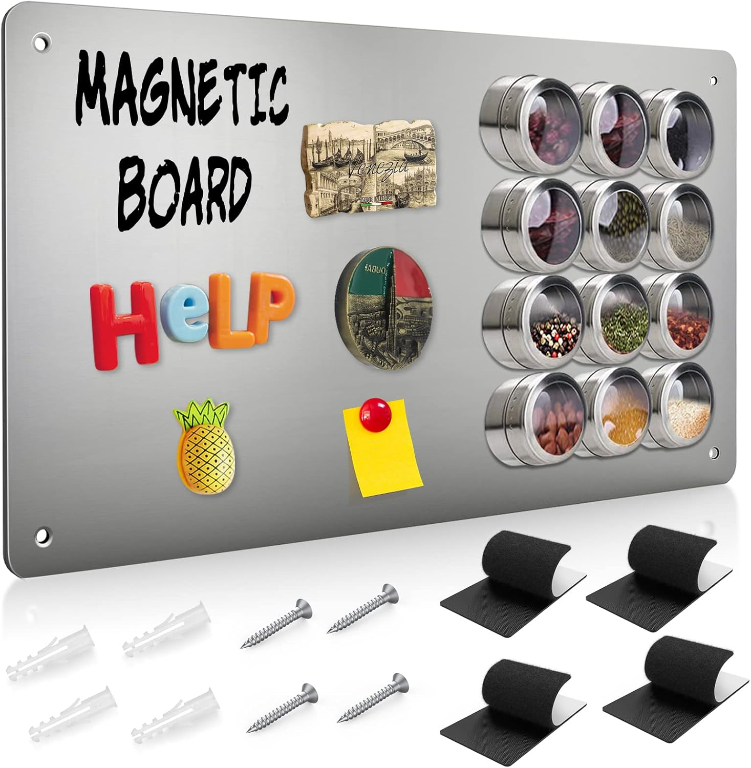 Woobroo [2 Pack] Magnetic Board for Wall, 43.5 x 30CM Metal Magnets Board Large Stainless Steel Sheet for Wall, Self-Adhesive or Screw Mount Magnet Board for Kitchen Spice Jars, Office
