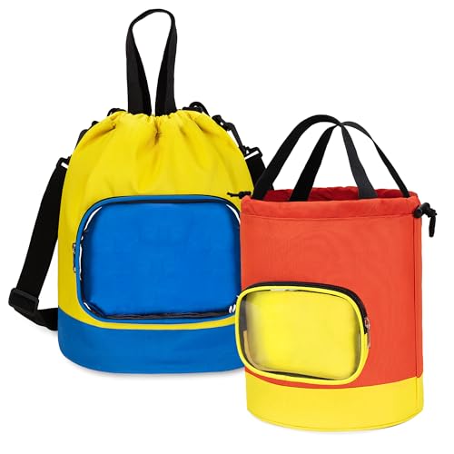 Rexmica 2 Pack Drawstring Toy Storage Bag for Building Bricks, Toy Storage Cinch Bucket Bag for Building Blocks, Magnetic Tiles, Board Games, Puzzles