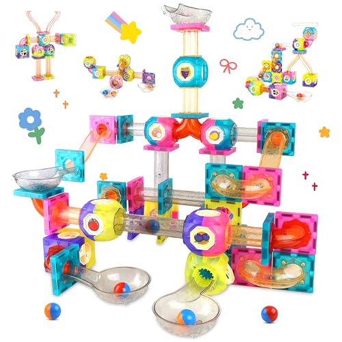 Welmay Magnetic Marble Run, 170PCS Magnets STEM Tiles Balls Track Brain for Kids, Magnetic Building Blocks Learning Educational Bricks-3D Construction