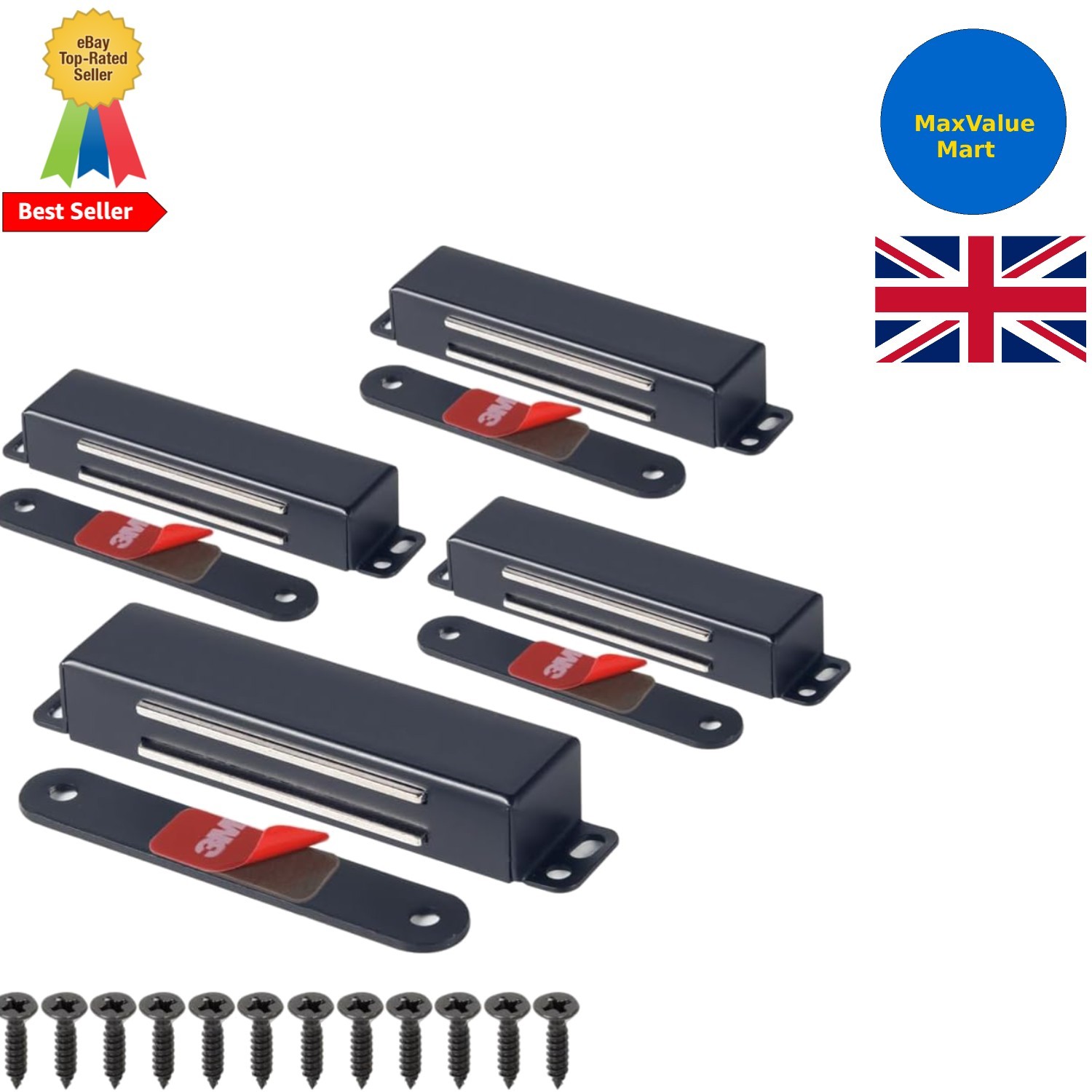 4 Pack Adhesive Magnetic Cabinet Door Catches, Cabinet Latch Lock Catch, Black