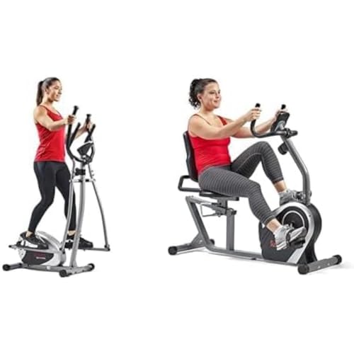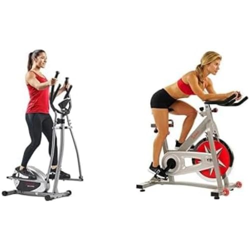 Sunny Health & Fitness Legacy Stepping Elliptical Machine, Total Body Cross Trainer with Ultra- Quiet Magnetic Belt Drive SF-E905 and Sunny Health & Fitness Exercise Bikes SF-RB4616S