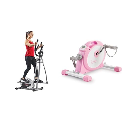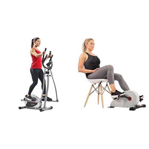 Sunny Health & Fitness Legacy Stepping Elliptical Machine, Total Body Cross Trainer with Ultra- Quiet Magnetic Belt Drive SF-E905 and Magnetic Under Desk Pedal Exerciser SF-B0891