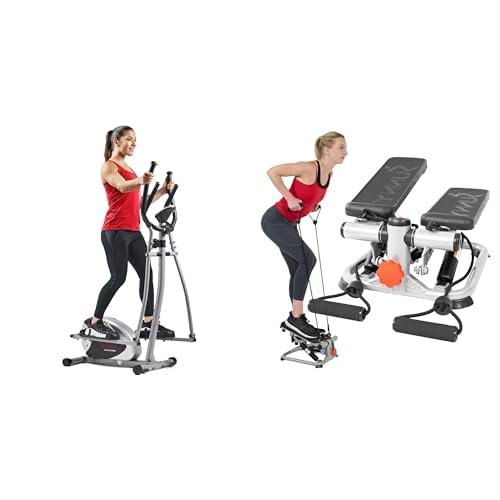 Sunny Health & Fitness Legacy Stepping Elliptical Machine, Total Body Cross Trainer with Ultra- Quiet Magnetic Belt Drive SF-E905 and Twister Stepper Machine - SF-S020027