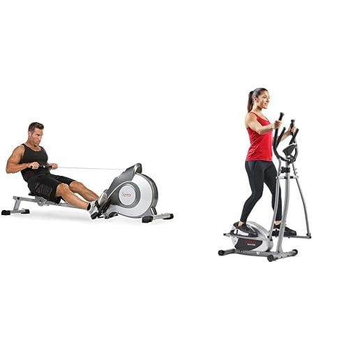 Sunny Health & Fitness Legacy Stepping Elliptical Machine, Total Body Cross Trainer with Ultra- Quiet Magnetic Belt Drive SF-E905 and Magnetic Rowing Machine SF-RW5515