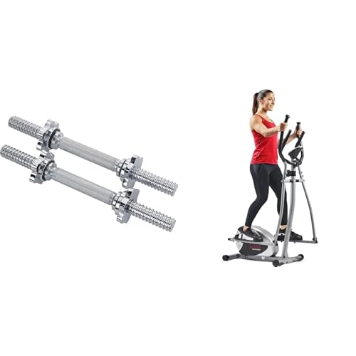 Sunny Health & Fitness Legacy Stepping Elliptical Machine, Total Body Cross Trainer with Ultra- Quiet Magnetic Belt Drive SF-E905 and Unisex Sunny Health & Fitness 35 Cm Threaded Chrome Dumbbell Bar