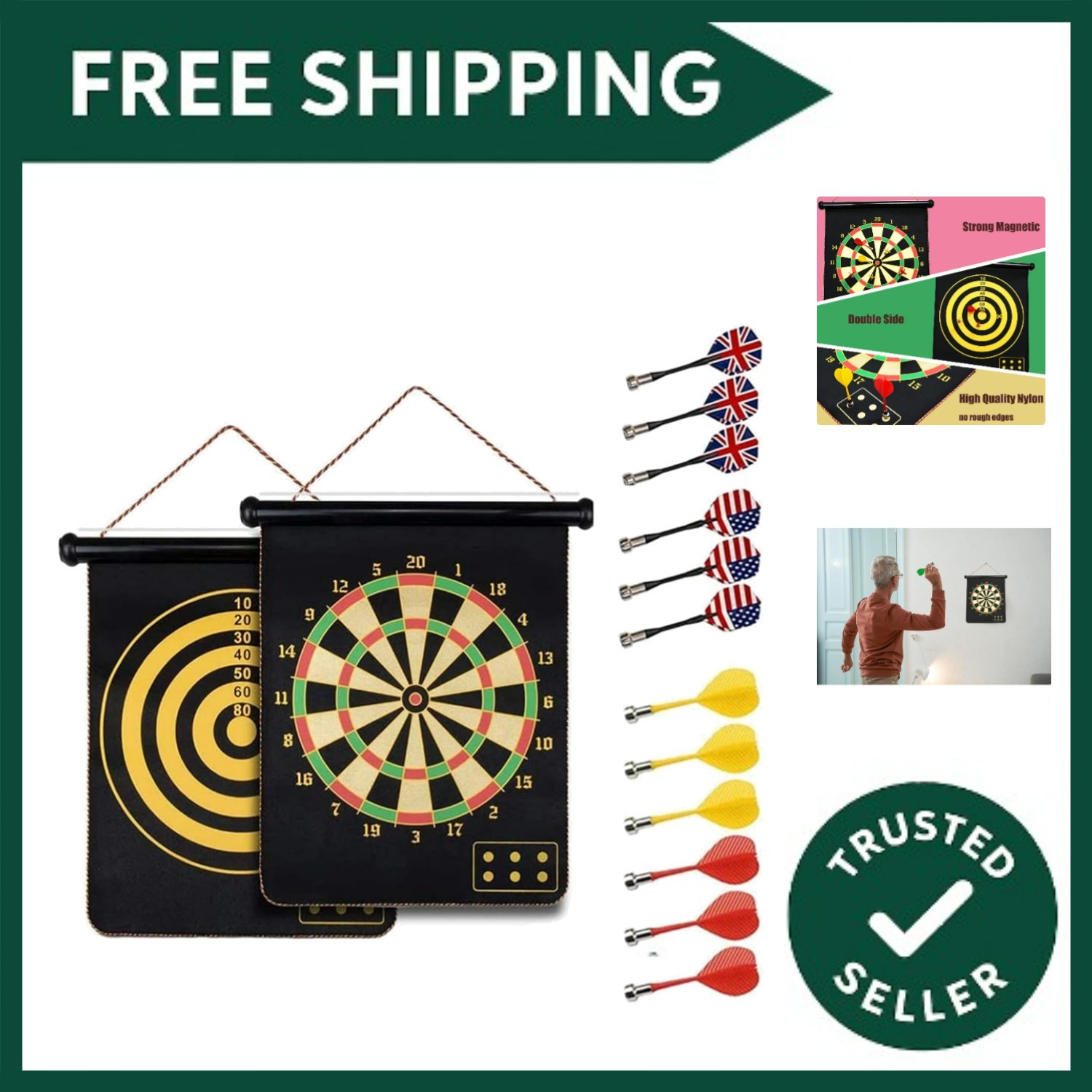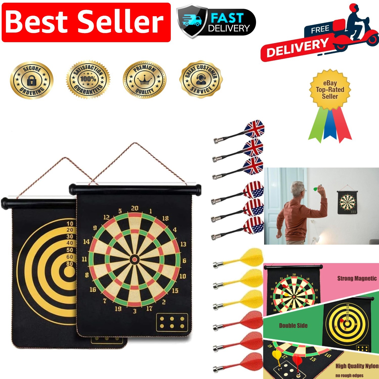 Magnetic Dartboard for , DoubleSided Set with 6 Safe Darts
