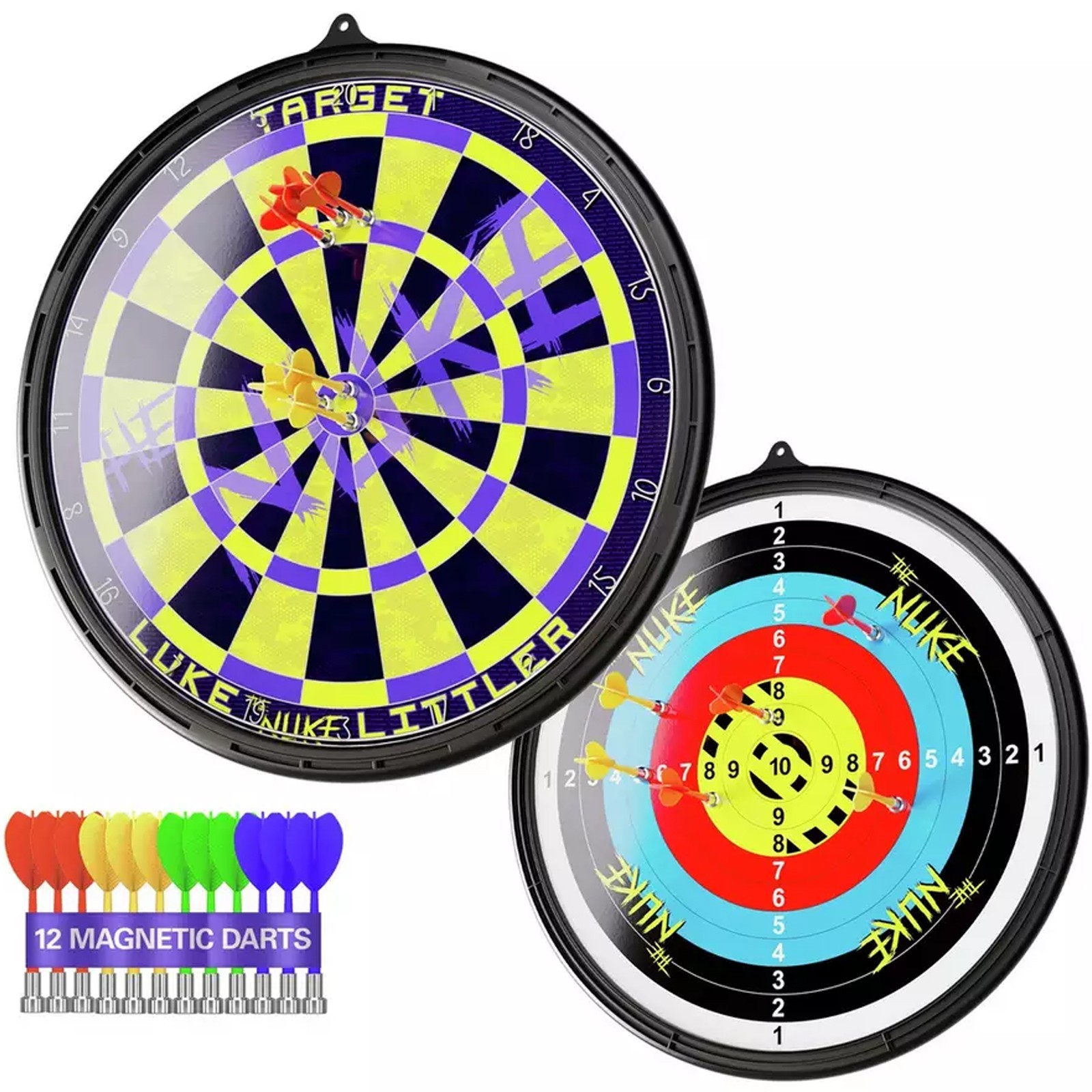 RHMM Target Luke Littler The Nuke Magnetic Dartboard Set, Double-Sided, 12 Magnetic Darts Included for Children and Adults Dartboard.