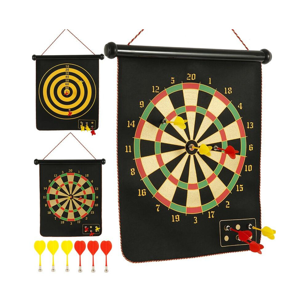 Xample® 2 in1 Magnetic Dartboard Roll Up 6 Magnet Darts Game Dart Board Double Sided Fun