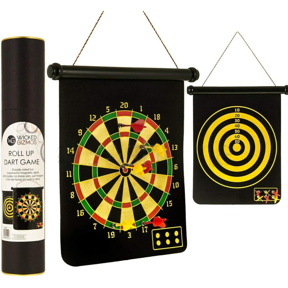 2-IN-1 ROLL UP DART GAME MAGNETIC DARTBOARD 6 MAGNET DARTS DOUBLE SIDED FUN