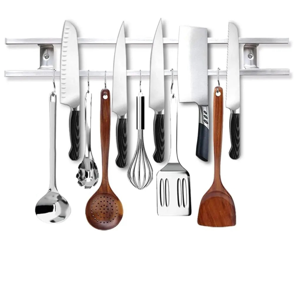 Wall Magnetic Knife Rack, Metal Kitchen Storage Strips, Rack with Hooks
