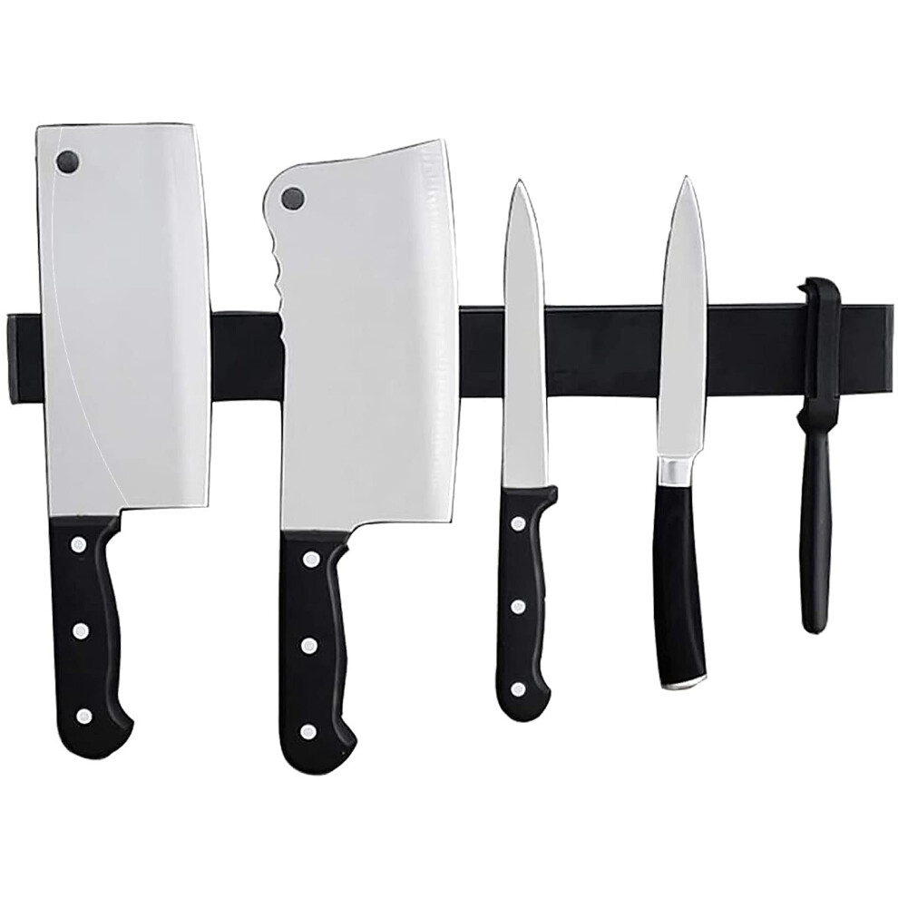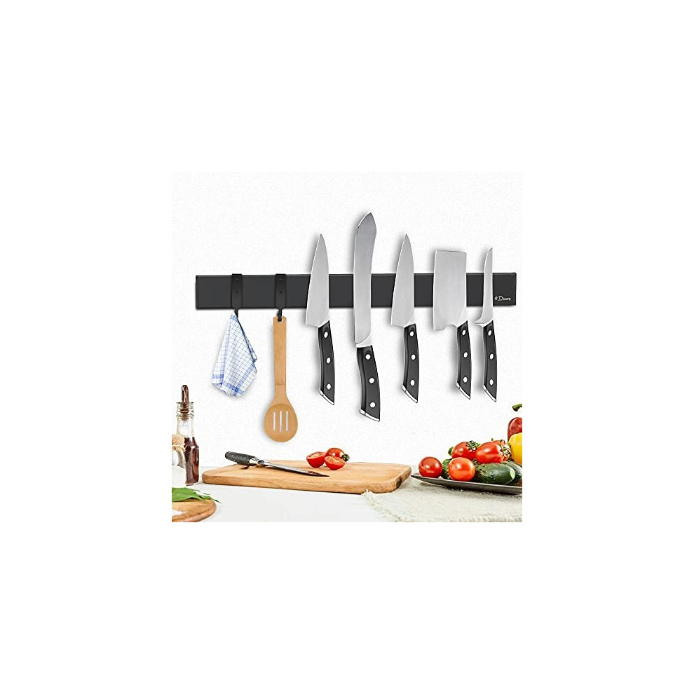 Dmore 59cm Magnetic Knife Holder for Wall with 15 Hooks, No Drilling Black Knife Magnetic Strip and Utensil Hanger, Powerful Knife Magnet Rack Include Tape and Screws, for Knives and Utensils