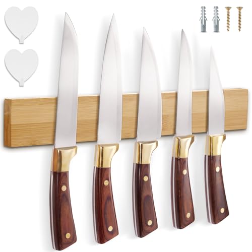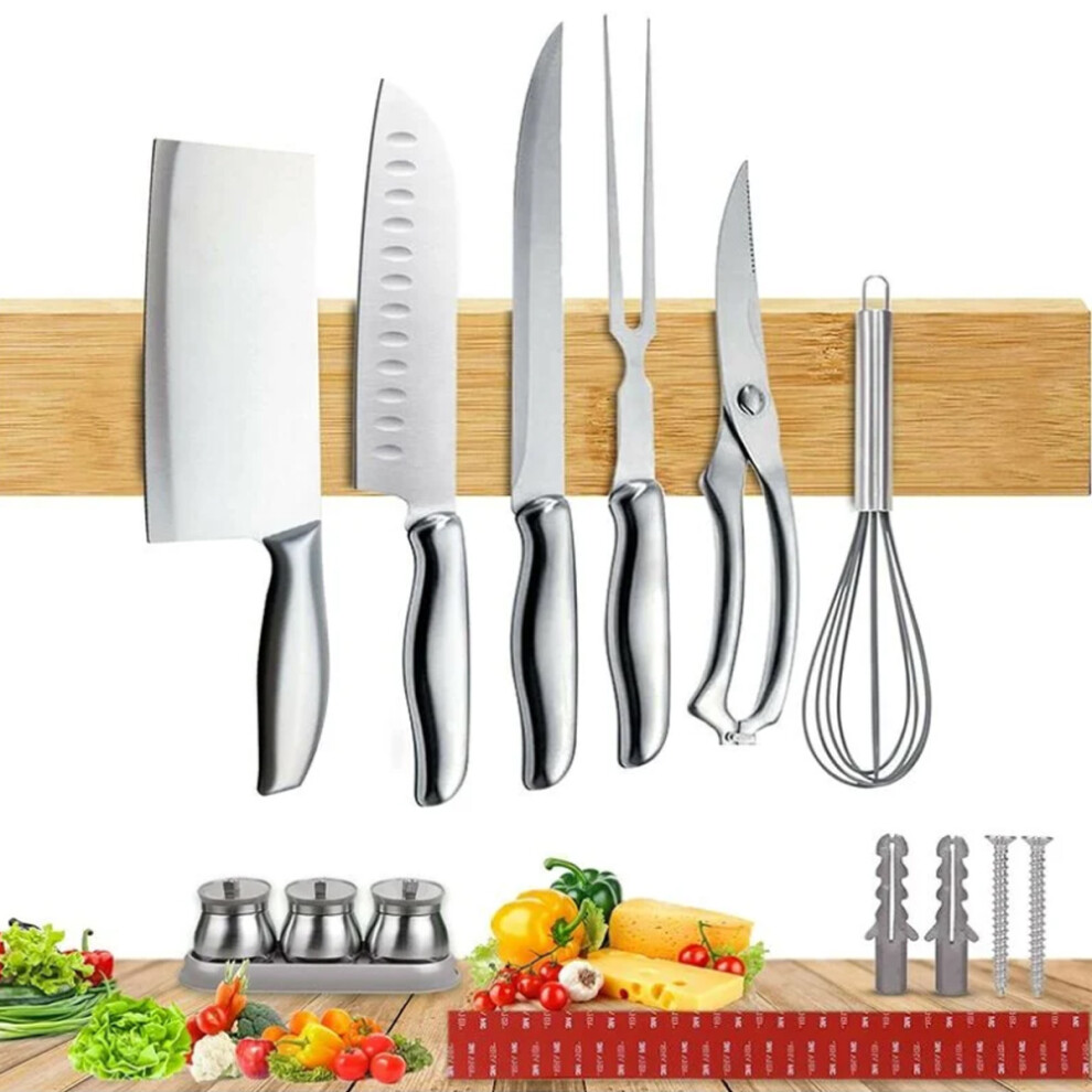 Magnetic Knife Rack Wall Mounted - Magnetic Knife Strip in Bamboo with Extra Strong Magnet 40 X 6 X 2CM, Magnetic Knife Stand for Wall, Magnetic Knife Holder for Utensils and Tools