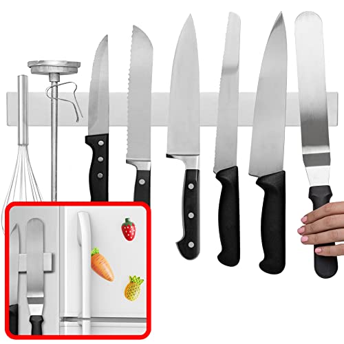 Magnetic Knife Holder for Wall - 15 Inch No Drill Knife Bar with Strong Double Row Magnets, Eco-Friendly & Waterproof Plastic, Holds Knives & Kitchen Tools Securely, Easy Peel & Stick Installation