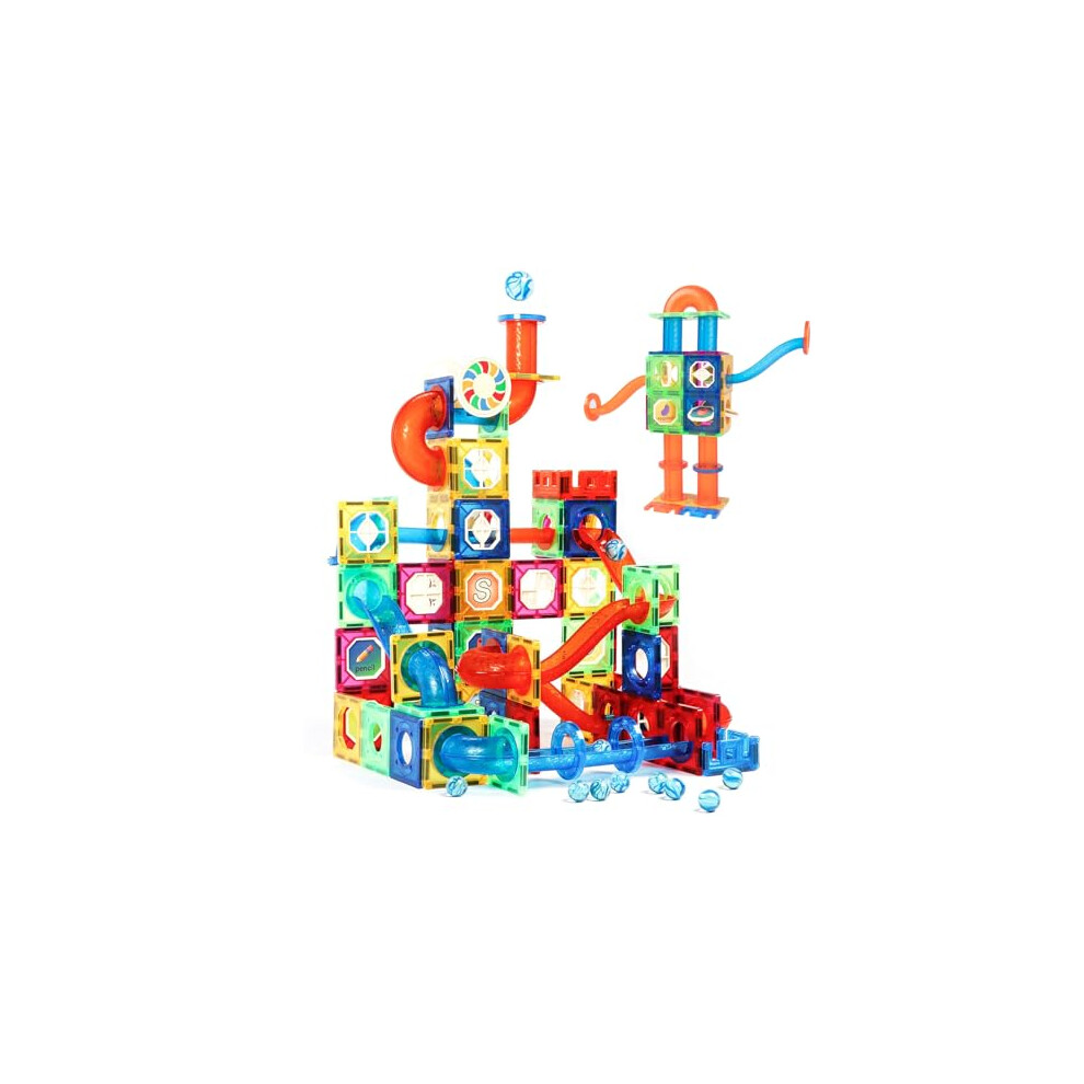 Magblock 122 PCS Magnetic Building Blocks Marble Run Toy for Kid, Magnetic Tiles STEM Construction Gift Toys for Boys Girls Age 3 4 5 6 7 Years Old