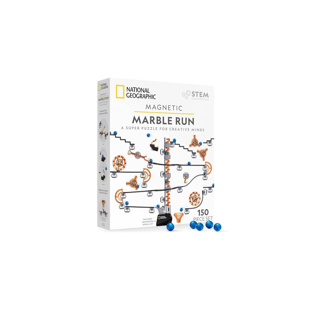NATIONAL GEOGRAPHIC Magnetic Marble Run - 150-Piece STEM Building Set for Kids & Adults with Magnetic Track & Trick Pieces & Marbles for Building A Marble Maze On Any Magnetic Surface