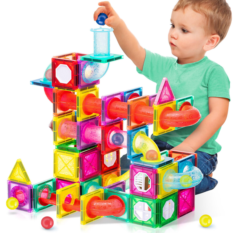Marble Run Building Blocks Set 148 Pcs Magnetic Building Tiles STEM Construction Toy for Kids 3+