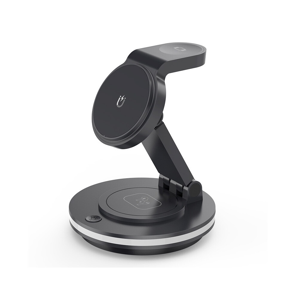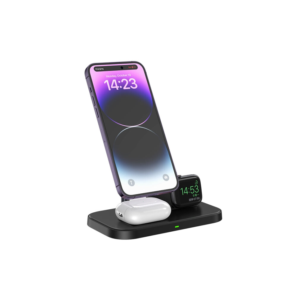 WA22 3 in 1 Magnetic Wireless Charger Phone Holder for iPhone 12 / 13 / 14 / 15 Series Phones & AirPods(Black)