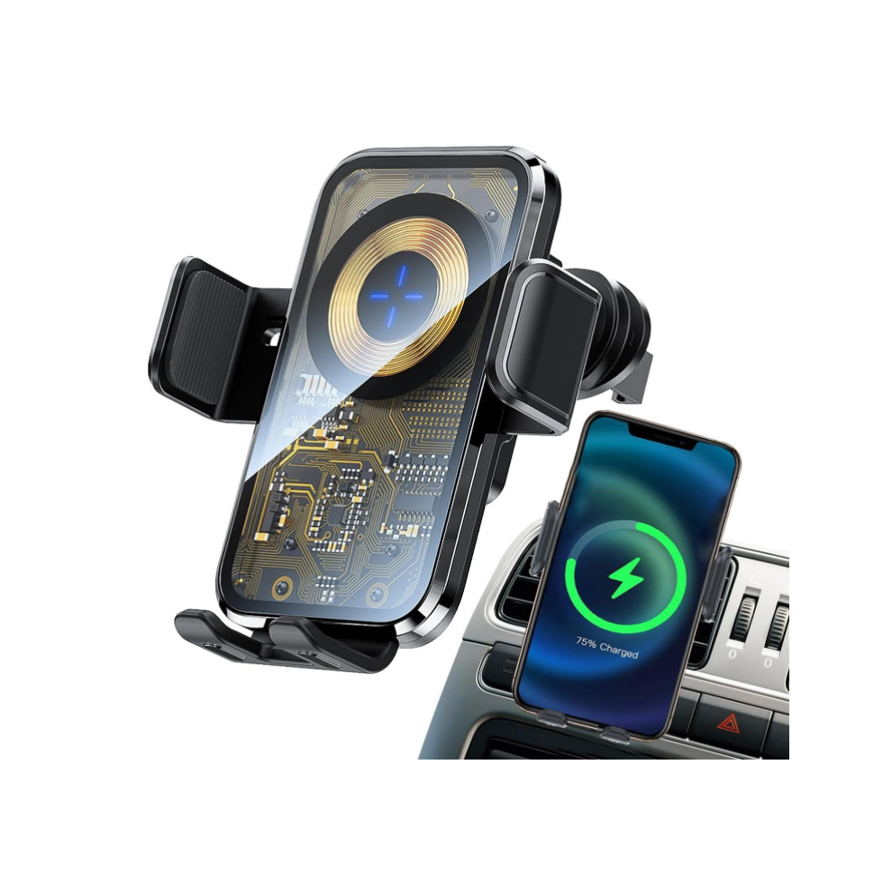 Chronus Wireless Car Charger,66W Fast Charging Auto Clamp Car Mount,Dashboard Vent 360 Degree Rotating Magnetic Phone Charger for Smartphone(Black)