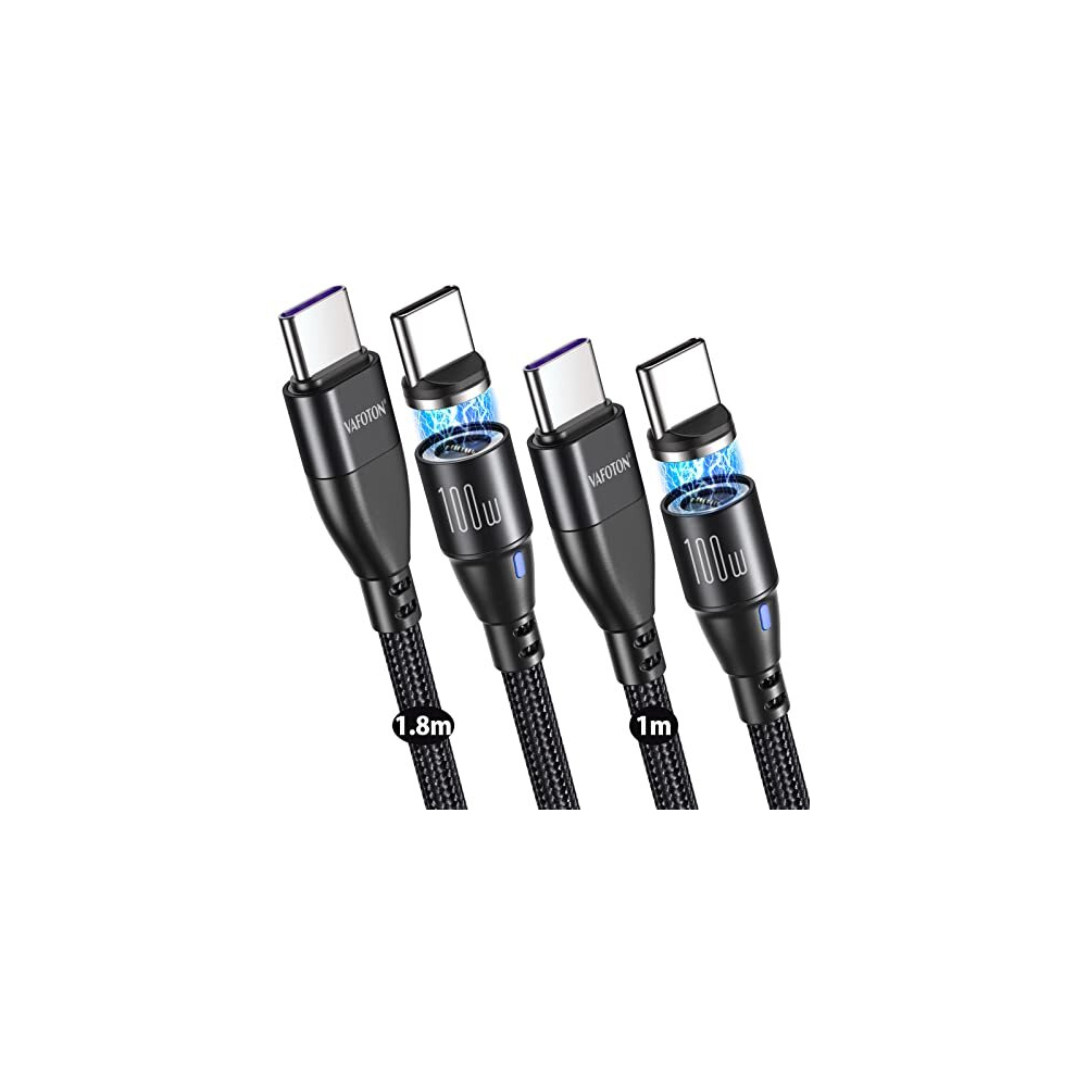 USB C to USB C Super Fast Charging Magnetic Charging Data Cable, VAFOTON Type C 100W 20V/5A PD Magnetic Phone Charger Cable[2 Pack 1M/1.8M] for MBook Pro 2021,Pad Pro, Samsung Galaxy S22/S21/S20+Ultra