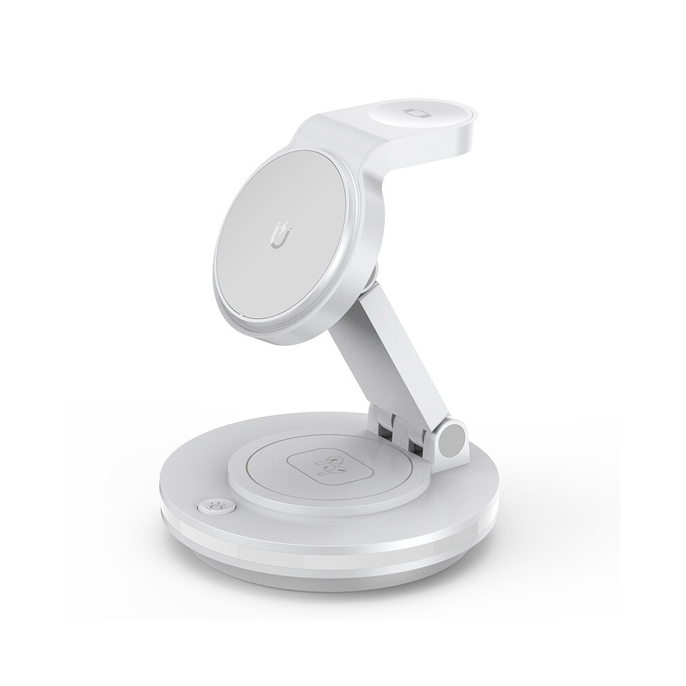 Chronus 3 in 1 Wireless Charging Station, Magnetic Phone Charger, Fast Wireless Charger Stand for iPhone 15-12/Pro Max/Mini, iWatch, Airpods(White)