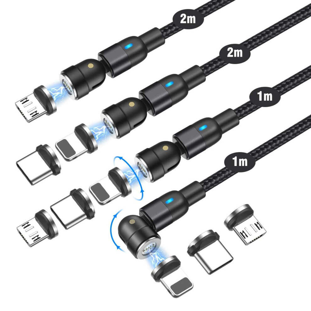 360° & 180° Rotation Magnetic Charging Cable(1m+1m+2m+2m), VAFOTON Fast Charging and Data Transfer Magnetic Cable, 3 in 1 Magnetic Phone Charger