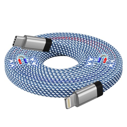 Magtame Magnetic iPhone Charger Cable 1.5M, USB C to Lightning Cable MFi Certified, Nylon Braided Cord Fast Charging Compatible with iPhone 14/13/12/11 Pro Max/XS MAX/XR/XS/X/8/7/Plus/SE Flat Blue