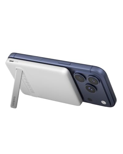 Belkin 5000mAh Magnetic Wireless Power Bank, Portable Charger Compatible with MagSafe, Battery Pack with 7.5W Output, 10W Input and Kickstand, Compatible with iPhone 16, 15, 14, 13, 12 Series - White