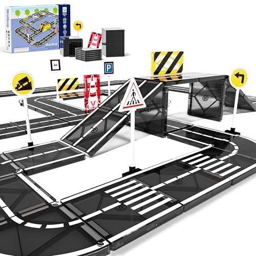 Magnetic Tiles Road Set for Kids - STEM Educational Construction Toys for 3 4 5 6 7 8+ Year Old Boys and Girls, Creative Building Toys for Toddlers, Ideal Birthday Idea (Magnet A)