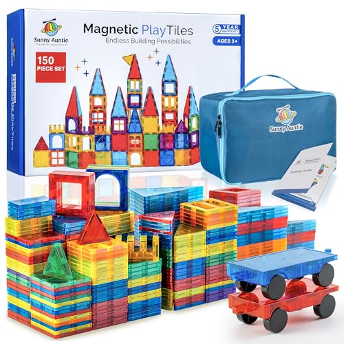 SUNNY AUNTIE Magnetic Tiles 150 PCS, Magnetic Tiles for Kids & Toddlers, Toy for 3 4 5 6 7 8 Year Old Boys & Girls, Gift Box, XL SET