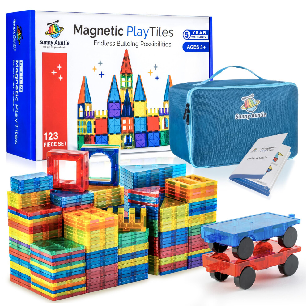 SUNNY AUNTIE Magnetic Tiles 123 PCS Magnetic Tiles for Kids & Toddlers Toy for 3 4 5 6 7 8 Year Old Boys & Girls Gift Box