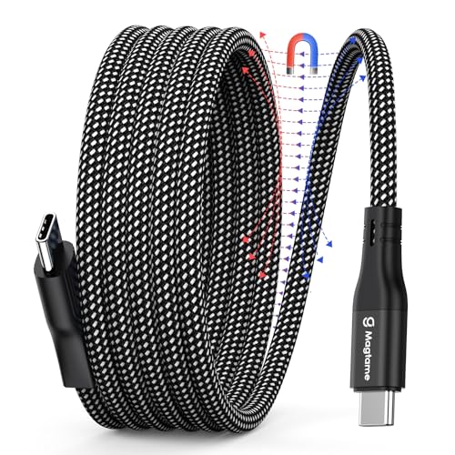 Magtame Magnetic USB C Cable, Elastic Coiled C to C Leads 60W(3A), 1.5M/5FT Retractable USBC Cord, Nylon Braided Type C Fast Charging Cables Compatible with iPhone 16,for Samsung