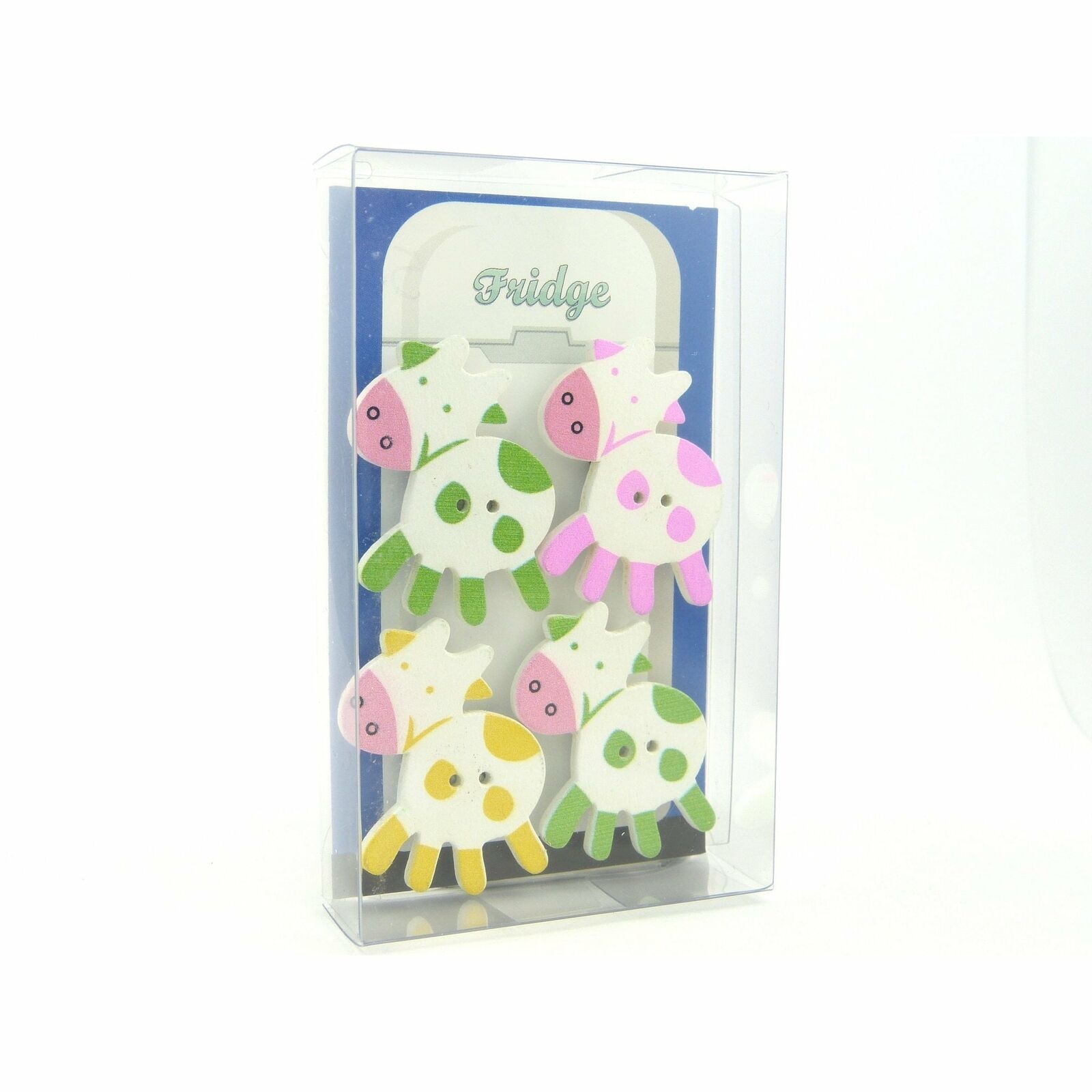 Cartoon Cow Fridge Magnets cute strong neodymium painted wood - 4 gift boxed