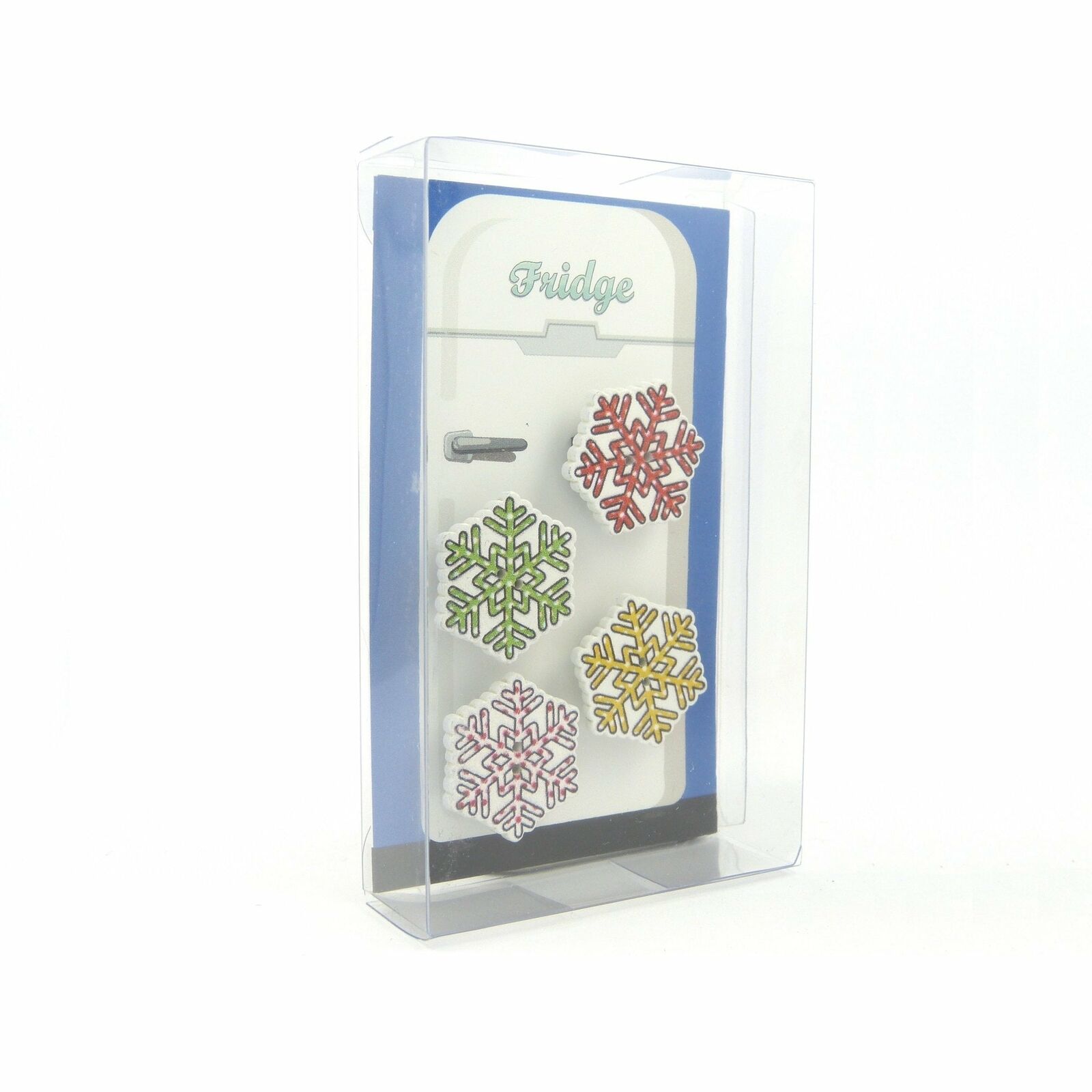 Snowflake Fridge Magnets cute strong neodymium painted wood - 4 gift boxed