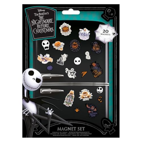The Nightmare Before Christmas 20-Piece Magnet Set (Colourful Shadows Designs) 20 Mini Magnets, Fridge Magnets, Door Magnets & Small Magnets for Fridge Decoration or Party Bags - Official Merchandise