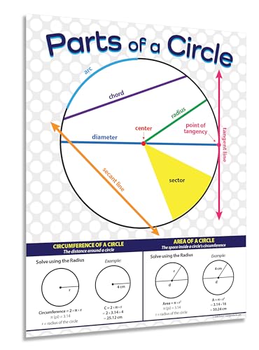 Safety Magnets ZOCO - Parts of a Circle Posters - Laminated, 17 x 22 inches - Geometry Posters for Middle and High School, Math Poster for Classrooms - Algebra, Pythagoras & Math Terms