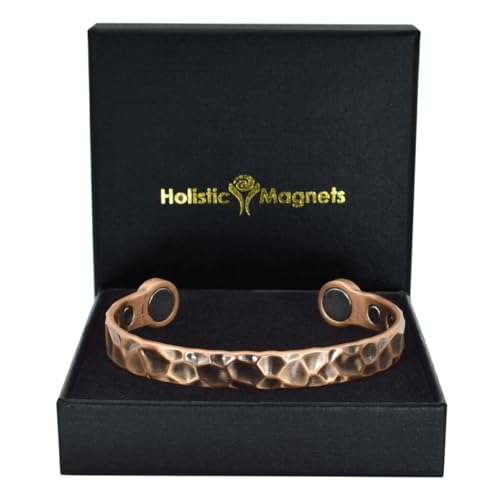 Mens Pure Copper Bracelet Magnetic Copper Bangle Cuff 6 Powerful Neodymium Magnets Adjustable, Hammered-HM (M: Wrist 16.5–19.5cm/6.3–7.7”)