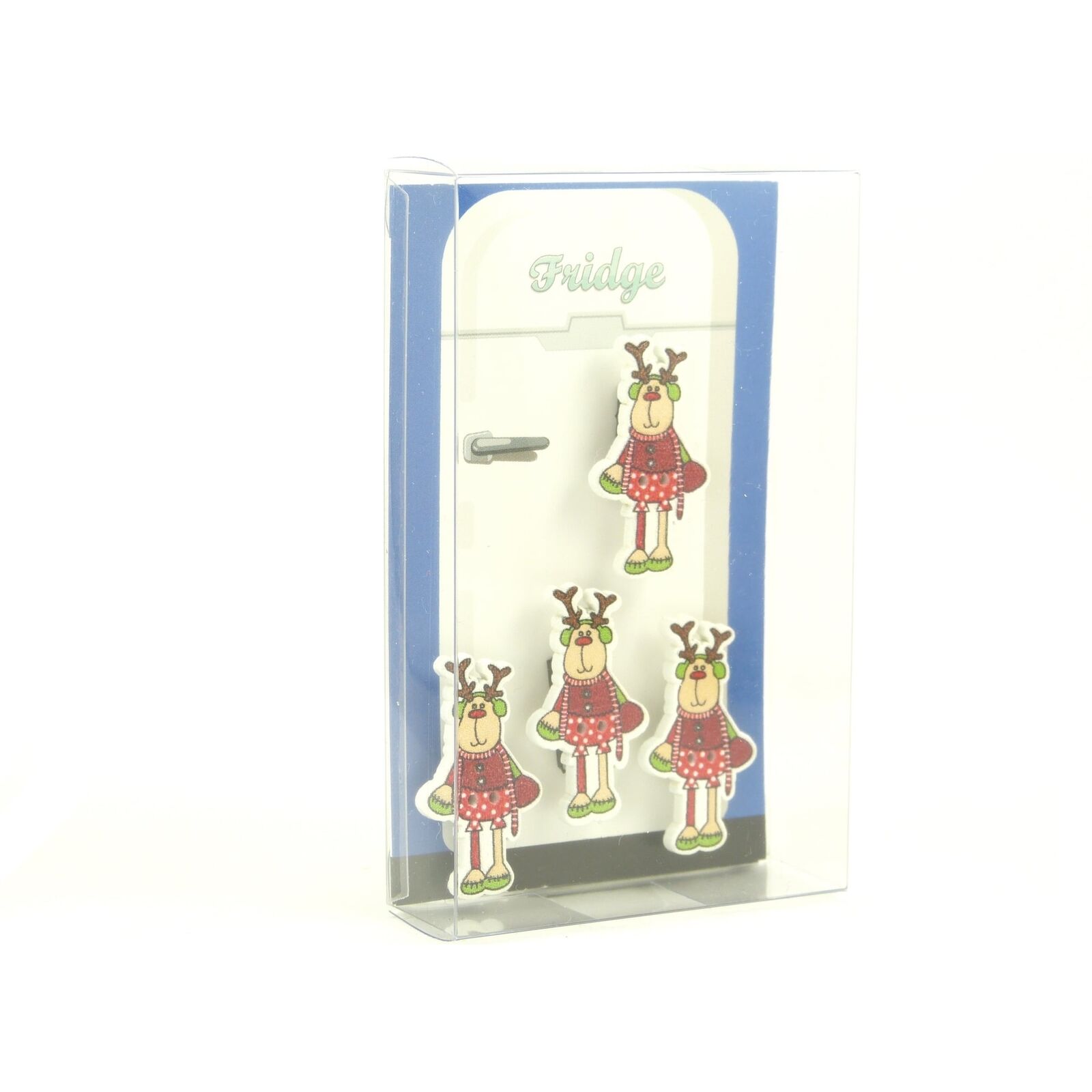 Reindeer Fridge Magnets cute strong neodymium painted wood - 4 gift boxed