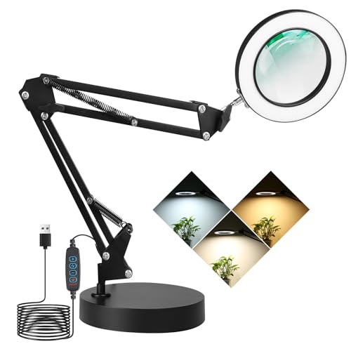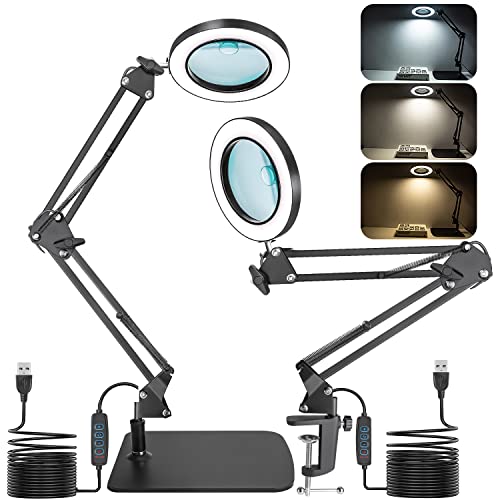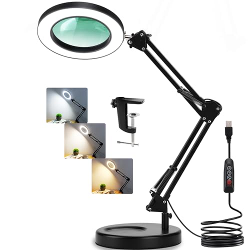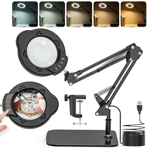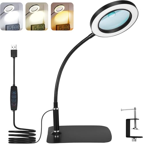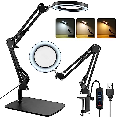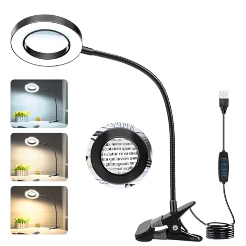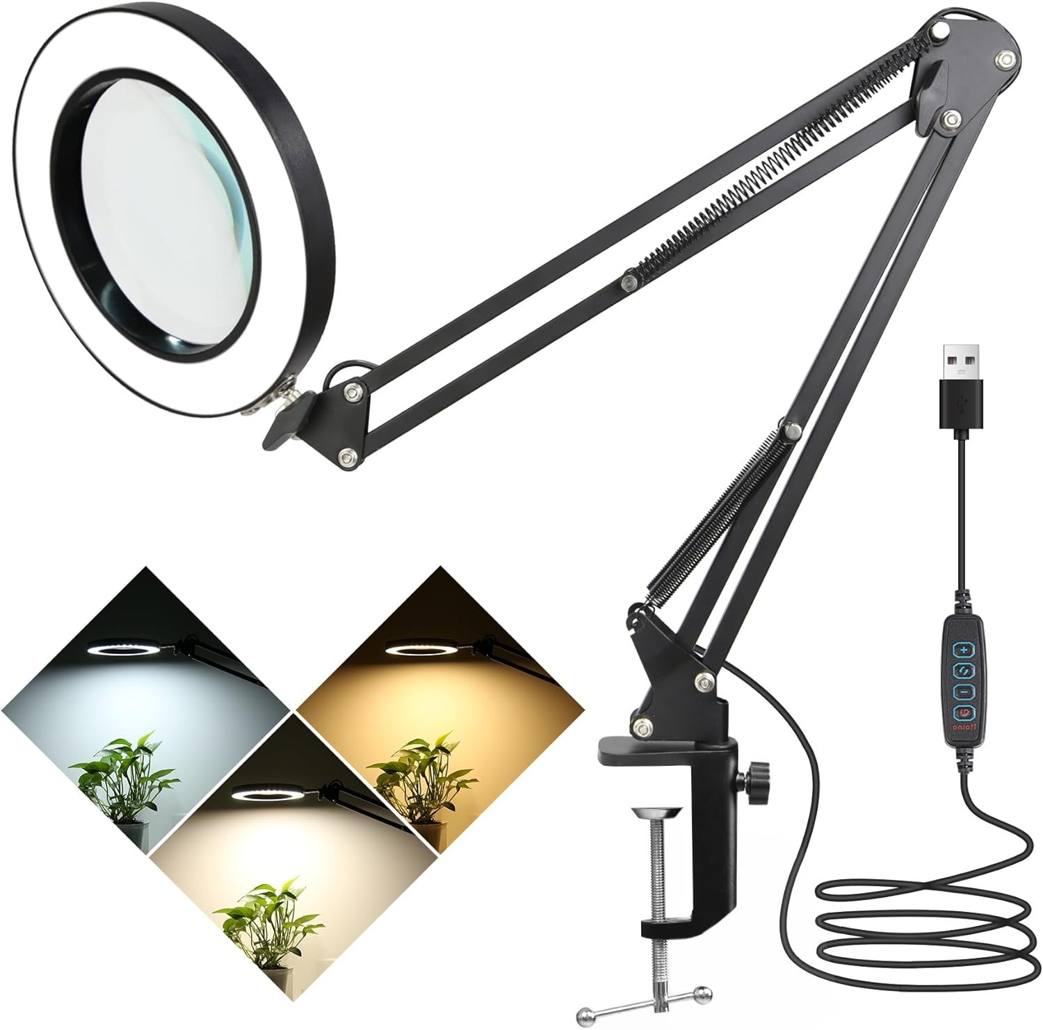 JUOIFIP 10X Magnifying Glass with Light and Stand, Magnifying Lamp Magnifiers with Clamp 3 Modes USB Light, Magnif.ying Glasses for Hobbies,Reading, Crafting,Sewing,Seniors,Craft Work