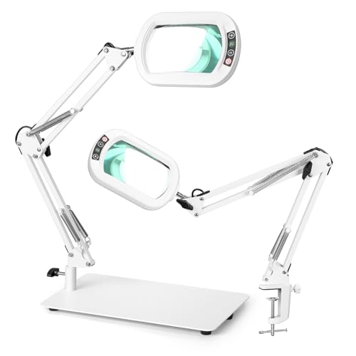 15X 10X Magnifying Glass with Light and Stand, 2 in 1 Magnifying Desk Lamp with Clamp & Base, 3 Color Modes Dimmable with Swing Arm, LED Lighted Magnifier Light for Reading, Repair, Crafts, Close Work