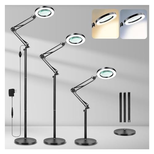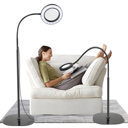 5X 10X Magnifying Glass with Light and Stand, 36 LED Dimmable Floor Magnifying L