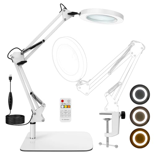 10X Magnifying Glass with Light and Stand Magnifying Desk Lamp & Clamp with 3 Color Modes &10 Adjustable Brightness Magnifying Glasses for Hobbies with Adjustable Swivel Arm & Remote Control