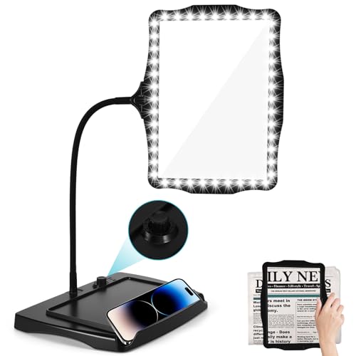 Unbranded 10X Rectangle Magnifying Glass with Light and Stand - Edge-Distortion-Free Square Lens, 5 Color Modes, Adjustable Gooseneck