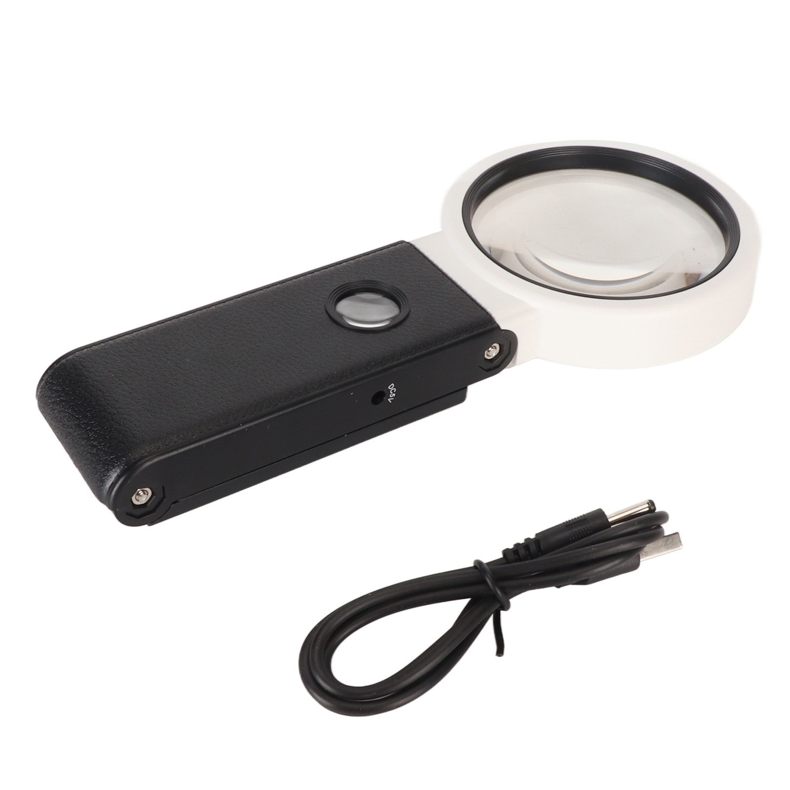 LuLobtg Magnifying Glass with Light and Stand 10X 25X Foldable Lighted Magnifier USB/Battery Powered 3 Color Mode Handheld Illuminated Reading Magnifier for Repairing, Crafts, Sewing, Artwork