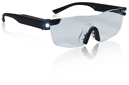 JML Magnifying Glasses with Light - Magnifier Spectacles for Hobbies and Reading for Hands-Free Wearable 160% Magnification - USB Rechargeable, Fits Over Standard Glasses - Mighty Sight