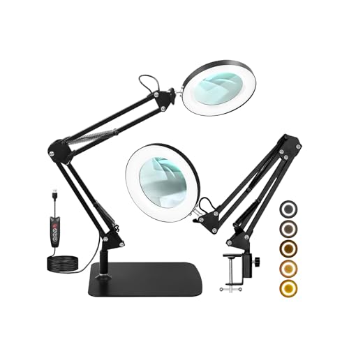 10X Magnifying Glass with Light and Stand, CS COSDDI 5-Color Mode Magnifying Glasses with Light 7 Adjustable Brightness 2-in-1 Magnifying Glasses for Diamond Hobbies Crafts Reading Close Work